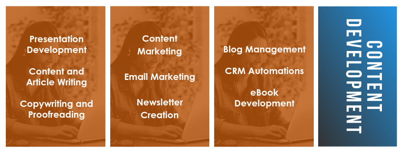 - eBook Development – eBooks are excellent when it comes to enticing audiences. Adding a free eBook download in your opt-in forms can help boost signups Publishing eBooks is also a great way to establish credibility in your industry.However, writing and designing eBooks can be very tedious. An eBook development VA can help you create eBooks without having to worry about creating content or designing the layout. Depending on the skill level and experience of your VA, they can help you with everything including research, content writing, layout design, and publishing of your eBook.