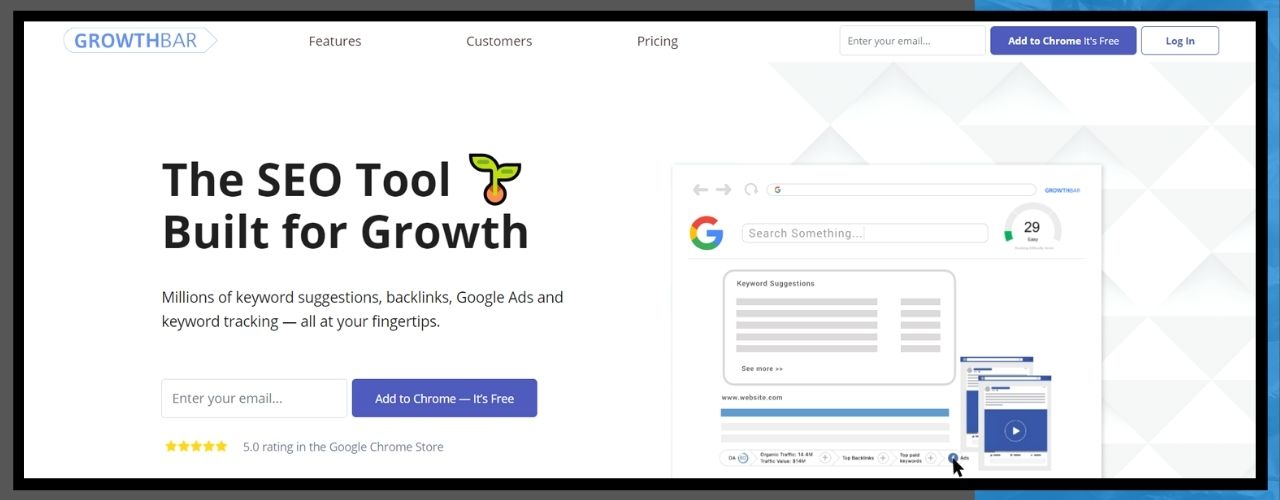GrowthBar is an SEO tool designed for generating, ranking, and tracking keywords. It evaluates keyword competition so users can decide if it’s worth pursuing or not. The tool would also suggest similar search terms with higher potential. Other SEO data points out that GrowthBar generates are site organic traffic and domain authority and word count. GrowthBar is free for 5 days and costs $29/month thereafter. -