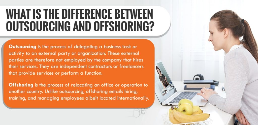 Businesses across the globe are slowly readjusting to the new industry and economic trends brought by the modern workplace. Now more than ever, people have come to realize the importance of remote work and digital business operations. As you chart a new course for your company, it’s crucial to start with understanding the key differences between outsourcing and offshoring. Knowing the differences between outsourcing and offshoring, both principal terms in virtual working and management, will help you pivot into the right digital direction.