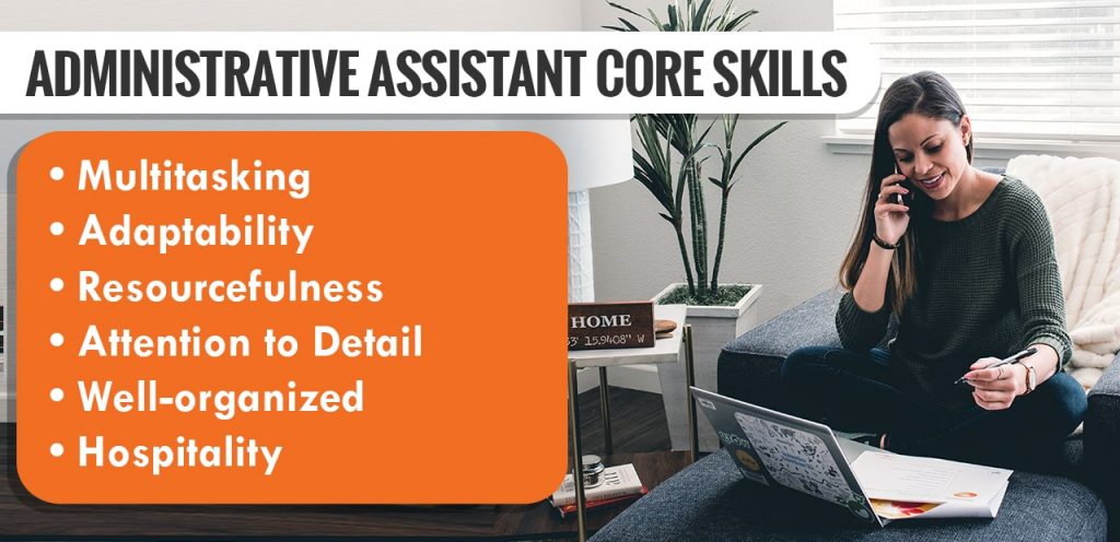 - Hospitality. Admin assistants are usually at the frontline of business communications. They should have a service mindset when communicating with different parties whether it’s through phone, email, or in person.