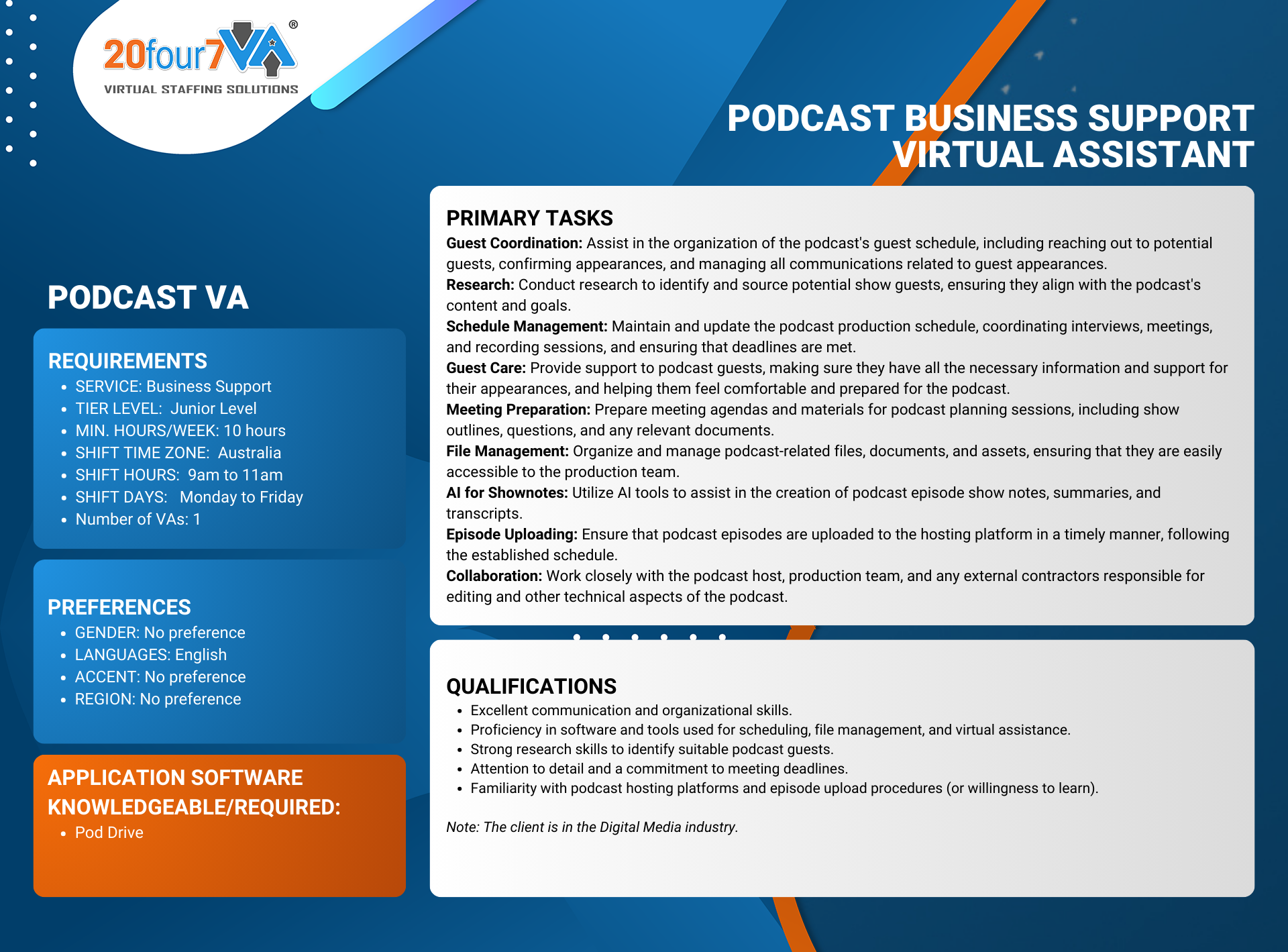 Podcast Virtual Assistant Sample Job Descriptions