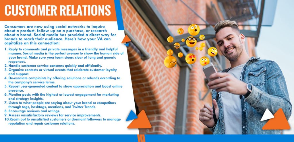Consumers are now using social networks to inquire about a product, follow up on a purchase, or research about a brand. Social media has provided a direct way for brands to reach their audience. Here’s how your VA can capitalize on this connection:
