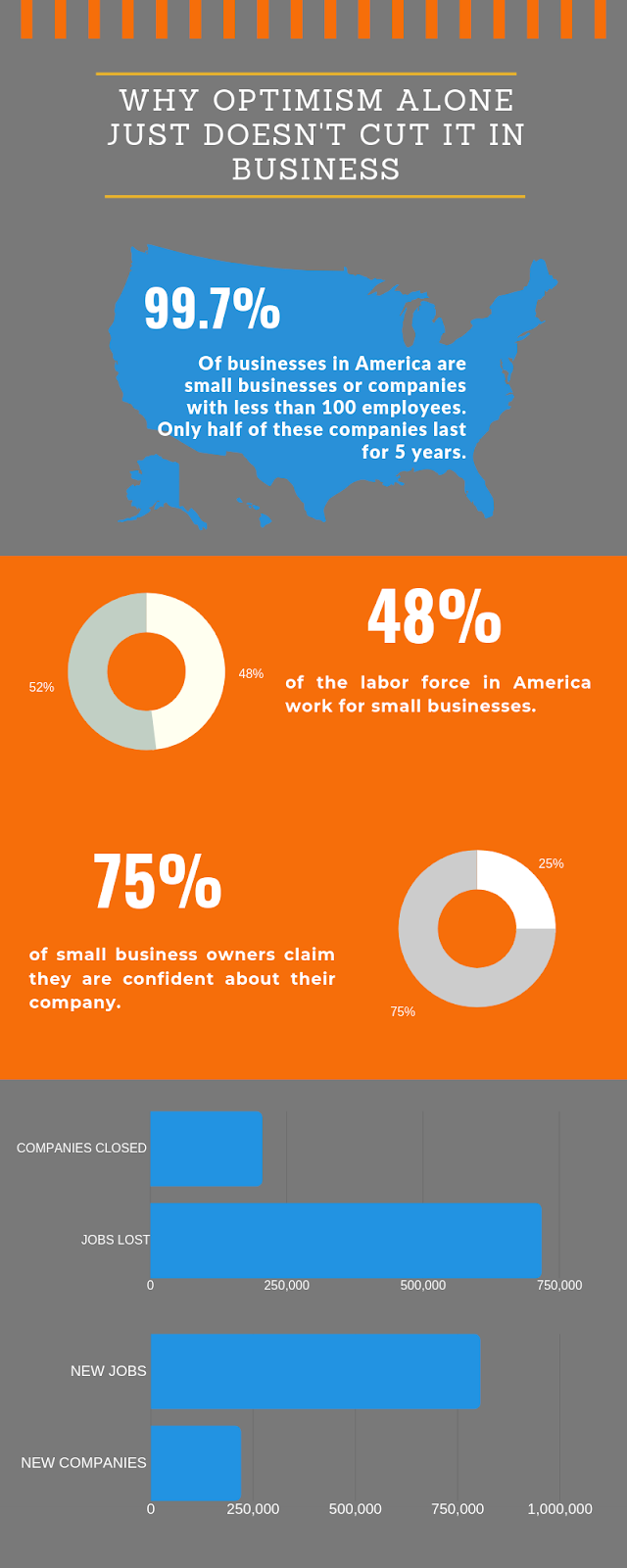 Optimism in business means that you, the business owner, are overrating your odds of succeeding. Being too optimistic is bad because it hinders you from making unbiased decisions or planning for all eventualities. Too much optimism has reduced many promising companies into a mere statistic for startup fails. Fortunately, this doesn’t mean that you have to abandon your ideas and plans and settle for ones that don’t inspire you. Nor does it mean that you’re required to take up a side job to fund your company.