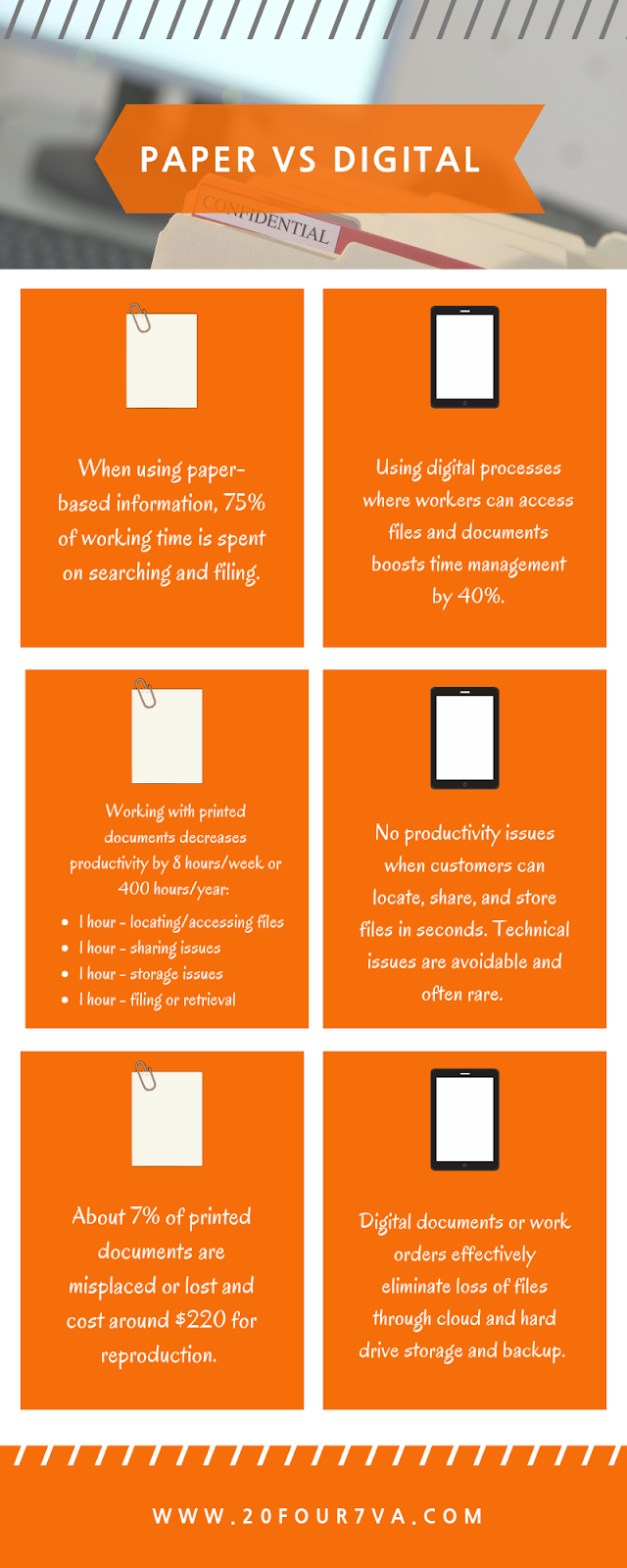 Compared to paper, digital storage has also shown to increase productivity and work efficiency.