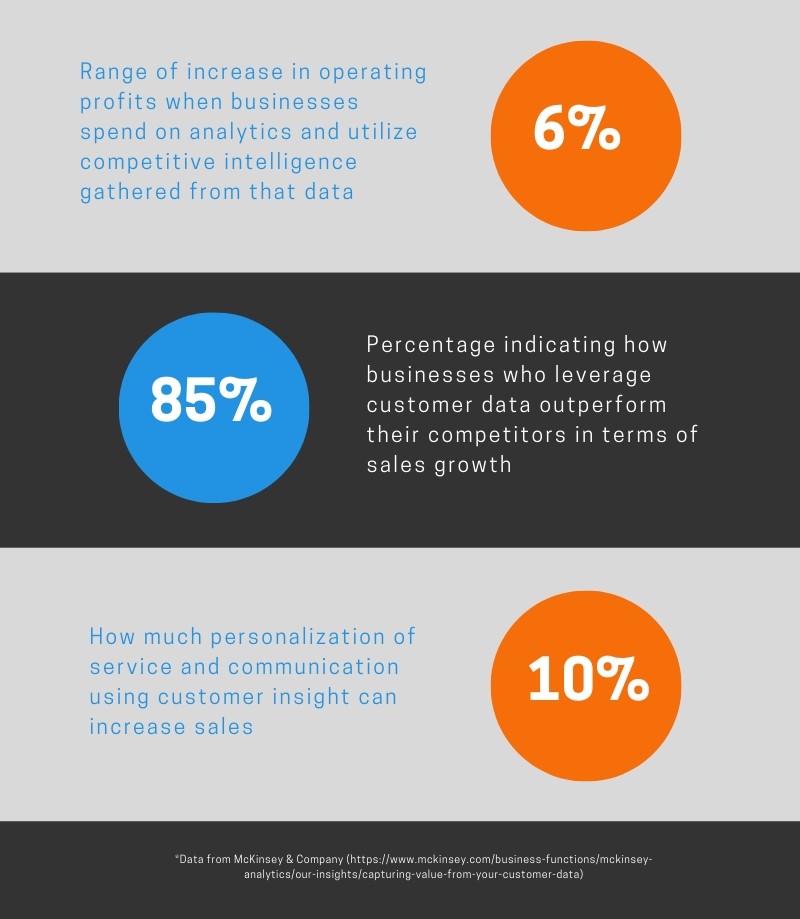 The relevance of customer data in business growth and expansion isn’t limited to eCommerce or to more established companies either. There are practically hundreds of data points available to small businesses in every industry, and each one of these data points can be utilized to improve a certain aspect of business such as customer retention, marketing strategies, customer experience, and so on and so forth.