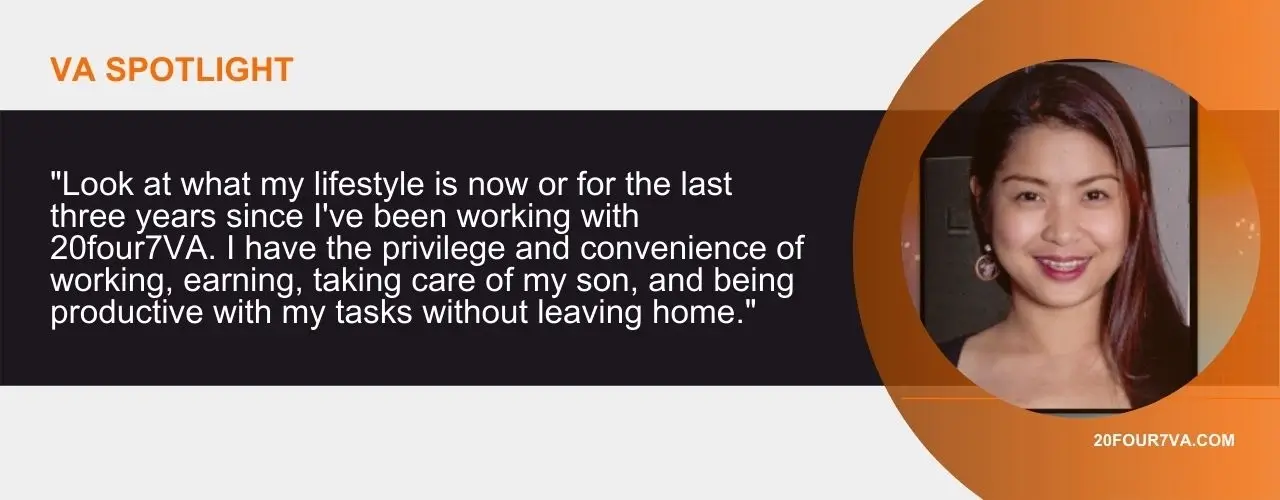 I don’t think I have to say anything anymore. I guess the one thing that I can say is look at what my lifestyle is now or for the last three years since I’ve been working with 20four7VA. I have the privilege and convenience of working, earning, taking care of my son, and being productive with my tasks without leaving home.