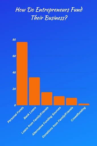 Statistics shows that business financing mostly comes from personal funds (77%), distantly followed by bank credits (34%) and loans from family and friends (16%).