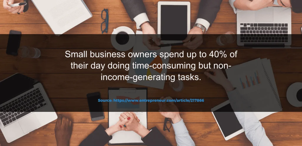 According to an article from Entrepreneur, small business owners spend up to 40% of their day doing time-consuming tasks. These are tasks that are necessary to keep their business afloat but don’t help at all in generating sales and additional revenue. These tasks include everything from monitoring and answering all emails, doing customer service, data entry, HR and payroll work, social media management, and so on and so forth.